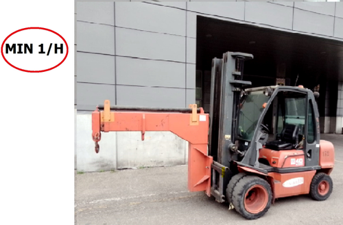 Il carrello elevatore con portata fino a 4.000 kg è provvisto di braccio gru e operatore.