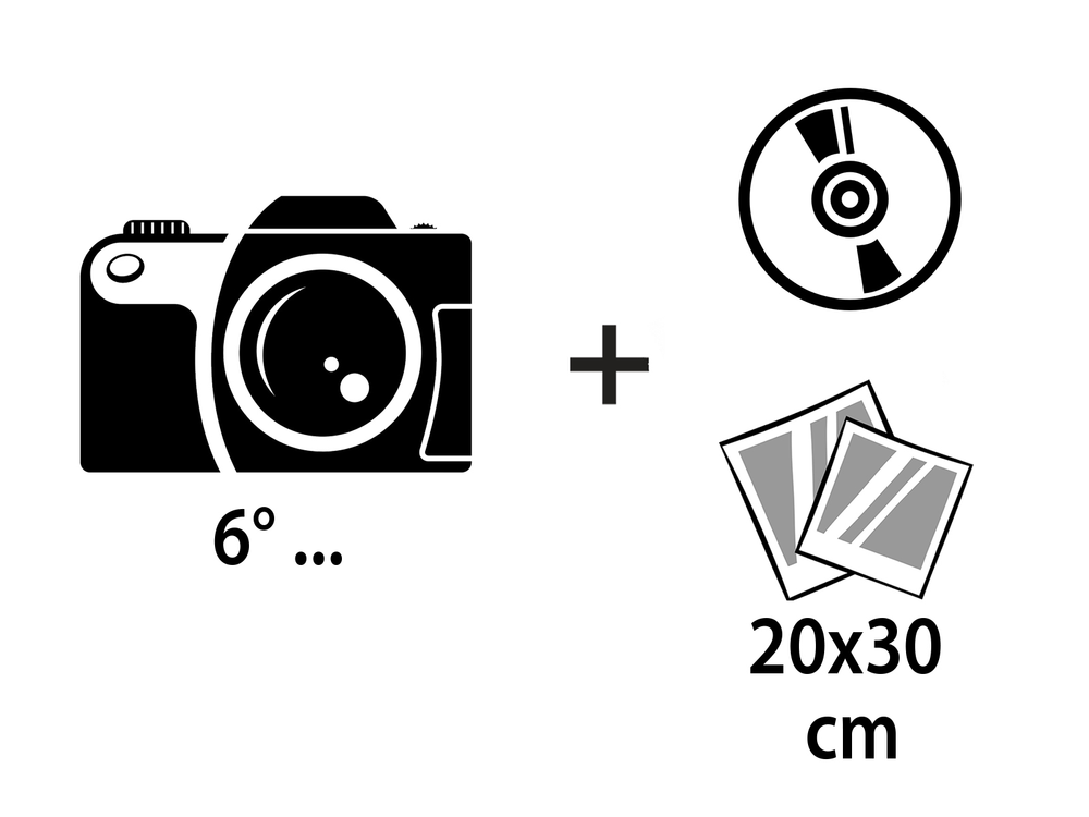 Il servizio comprende la realizzazione delle riprese fotografiche ad alta risoluzione (300 dpi su A4), la fornitura di un CD e la stampa su formato cm 20x30