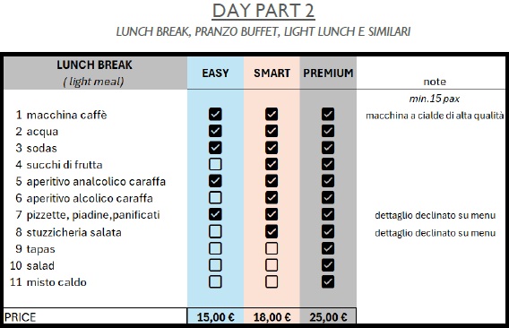 Il menu sarà da ritenere indicativo con variabilità dei prodotti secondo stagionalità.